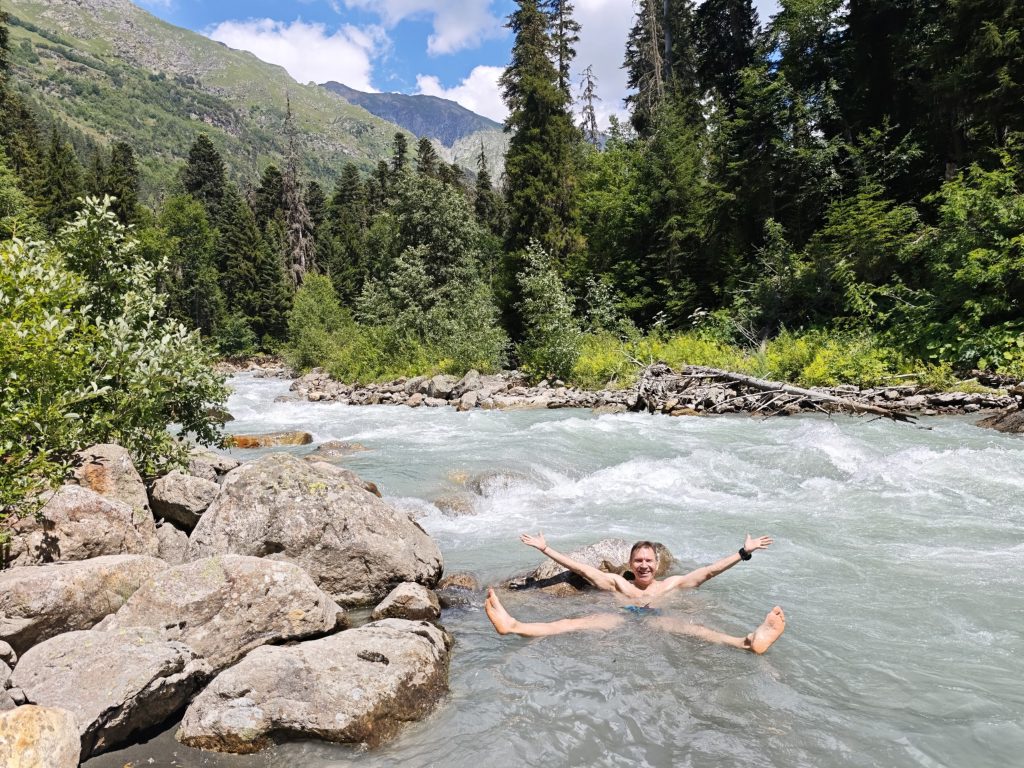 Купание в горной реке прекрасно в жаркий день — даёт заряд бодрости и адреналина!