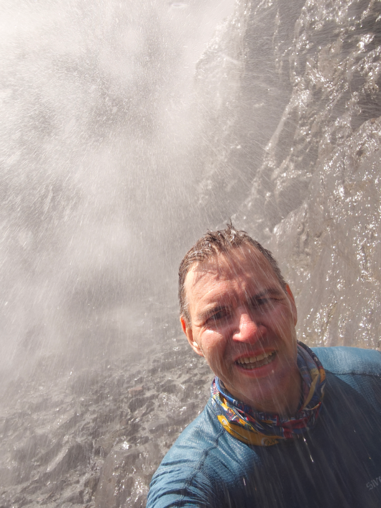 Наконец-то получилось постоять под водопадом! Он не поражает мощью, но струи воды, падающие с высоты 50 метров, бьют по телу довольно сильно. Не самое приятное, но впечатляющее ощущение! )
