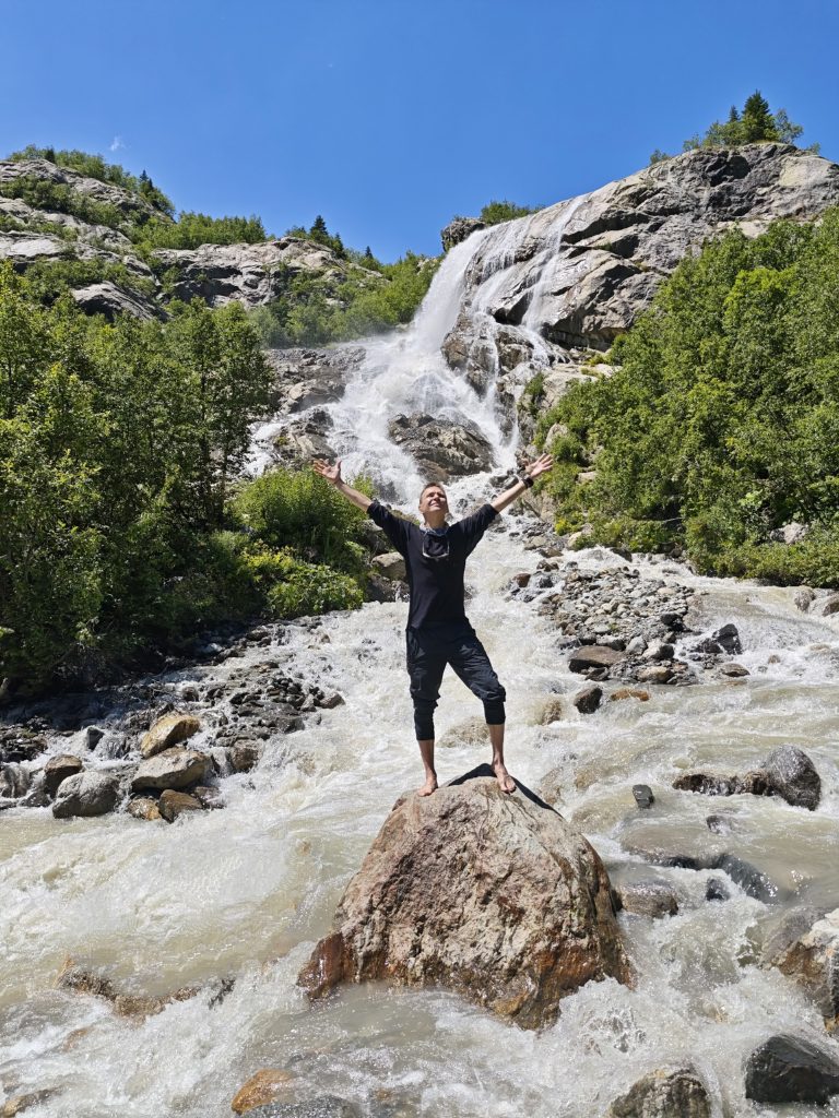 Водопад Алибек в долине одноименной реки. Ледник Алибек закрыт, т.к. активно тает и разрушается…