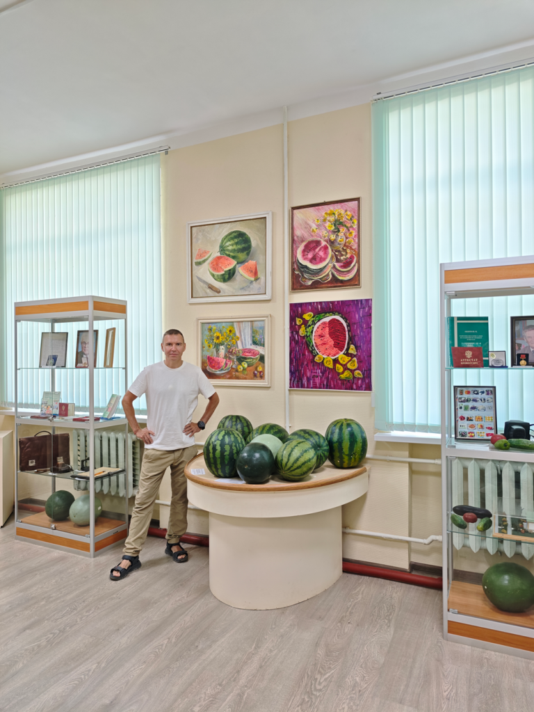 Вот так мы в Астрахани едим арбузы – вырезаем сладкую середину, а остальное на выброс! Арбуз тут, кстати, прямомо с бахчи стоит примерно 150 рублей… А еще я побывал в НИИ овощеводства, где находится единственный в Европе Музей арбуза! Там-то я наконец узнал правду: арбуз – это не ягода, а тыквина! И самое шокирующее: все наши народные методы проверки спелости – по хвостику, звуку при постукивании и размеру желтого пятна – с научной точки зрения не имеют доказанной корреляции с реальностью!)